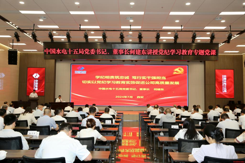 根据公司党委党纪学习教育总体安排,7月10日,公司党委书记、董事长何建东以《学纪明责筑忠诚、笃行实干强担当,切实以党纪学习教育实效促进公司高质量发展》为题讲授党纪学习教育专题党课。公司党委副书记、工会主席邵军主持会议,公司领导班子成员参加学习。 何建东指出,在全党开展党纪学习教育,是以习近平同志为核心的党中央作出的重大决策,是巩固拓展学习贯彻习近平新时代中国特色社会主义思想主题教育成果、弘扬党的严明纪律优良传统、贯彻落实党的自我革命思想、纵深推进全面从严治党的重要举措。公司上下要深刻认识开展党纪学习教育的重大意义,大力弘扬马克思主义学风,深入学习贯彻习近平总书记关于全面加强党的纪律建设的重要论述,进一步强化纪律意识、加强自我约束、提高免疫能力,增强政治定力、纪律定力、道德定力、抵腐定力,始终做到忠诚干净担当,奋力推动公司加快建设可持续高质量发展一流建筑企业。 何建东强调,纪律是党的生命线,是管党治党的“戒尺”,也是党员干部约束自身行为的标准和遵循。要突出目标导向,强化纪律建设,深刻领会全面从严治党工作的新部署、深刻认识中央企业治理和合规监管的新要求、深刻把握公司党风廉政建设和反腐败工作的新形势,切实增强学习新修订《中国共产党纪律处分条例》的主动性和自觉性,做到学纪、知纪、明纪、守纪。要抓实抓好公司内部审计、巡察、联合检查等工作,将强化合规管理的压力向各个管理层级层层传导,以整改追责推动规范管理,提升整体管理效能,夯实公司高质量发展基础。要主动把党的自我革命思想贯彻到企业改革发展每个领域、每个环节,切实做到抓具体、抓深入,始终做到绝对忠诚、绝对可靠、绝对纯洁。 何建东要求,要把党纪学习教育与巩固拓展主题教育成果衔接起来,与巡视审计整改统筹起来,同推动公司高质量发展融合起来,突出抓教育、严管理、正导向、强担当,教育引导党员干部,进一步夯实明纪履责、遵纪守法的“思想根基”,扎紧严管厚爱、有畏有为的“权力之笼”,筑牢风清气正、干事创业的“自律防线”,弘扬自强不息、勇于超越的“企业精神”,自觉锤炼党性、提升觉悟,不断提升敢担当的责任心和善担当的履职能力,做到坚持事业追求、发扬斗争精神、遵守法纪底线,全力以赴推动公司改革发展重点任务落实落地,切实把党纪学习教育成效转化为公司高质量发展成果。 何建东强调,当前,正处在下半年冲刺阶段,公司改革发展各项任务艰巨繁重,公司上下要进一步统一思想、统一意志、统一行动,把党纪学习教育成效转化为解决各种复杂问题、应对各种风险挑战的能力,转化为锐意进取谋发展、担当有为抓落实的实际行动,锚定目标任务不放松,聚焦质量效益不懈怠,坚定信心、振奋精神,聚焦“水能城数”战略布局,紧盯新能源业务、国际业务、农水业务、投资运营维护业务“四个转型”,齐心协力高质量抓好抢订单、抓履约、兴国际、强投资、破运营、强党建等重点工作,努力确保全年各项生产经营目标任务顺利完成。 何建东指出,党纪学习教育离7月底阶段总结不到一个月的时间。公司各级党组织要及时跟进、深入学习贯彻习近平总书记关于党纪学习教育的重要讲话、重要指示批示精神,把学习贯彻落实《国有企业管理人员处分条例》纳入党纪学习教育和党组织书记讲专题党课,坚持目标不变、标准不降、任务不减,高质量完成党纪学习教育“规定动作”各项任务。 邵军就扎实开展党纪学习教育提出四点要求:一是要全面系统学,组织党员原原本本、逐章逐条学习《中国共产党纪律处分条例》,严格遵守党的纪律,做到忠诚履职尽责。二是要提高认识,对标《公司党委开展党纪学习教育实施方案》《基层党支部任务安排表》,系统进行查漏补缺,确保各项重点工作任务全部完成。 三是要坚持融入日常,把开展党纪学习教育同公司深化改革、项目管理提升三年行动和完成公司全年目标任务结合起来,使党纪学习教育每项措施都成为促进公司中心工作的有效举措。四是要注重统筹结合,把学习《国有企业管理人员处分条例》和《中国共产党纪律处分条例》结合起来,结合党纪学习教育一体部署、一体谋划、一体落实。 本次党课讲授采用“主会场+视频分会场”的方式进行。公司高级管理人员、本部中层管理人员、业务部门关键岗位和党群工作部门人员,以及所属各单位主要负责人、党委副书记、纪委书记在主会场参加学习;所属各单位其他班子成员、总经理助理、业务部门关键岗位人员、党务纪检工作人员及各项目部班子成员、党支部委员、财务、经营、设备物资等部门“关键岗位”人员在视频分会场参加学习。