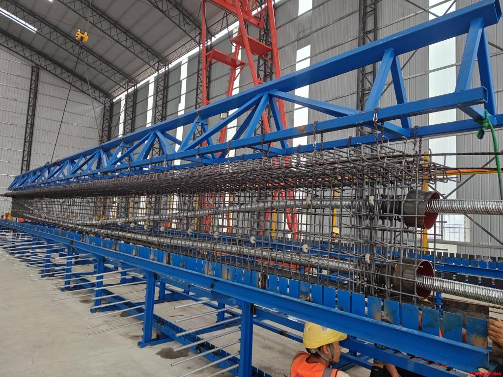 为确保首片预制T梁顺利浇筑,项目部提前开展质量、安全、技术交底,采用“智慧梁场”建设模式,以移动台座为核心枢纽,通过电驱动轨道系统实现台座在钢筋绑扎、混凝土浇筑、蒸汽养生、预应力张拉压浆四大功能区的循环移动,无需反复拆装模板,较传统固定台座工艺生产效率提升30%以上,并通过全程视频监控与数据追溯系统,实现从原材料进场到浇筑成型的全流程管控。下一步,项目部将复制首件成功经验,开启规模化生产,为汉宜改扩建总体施工目标蓄力。