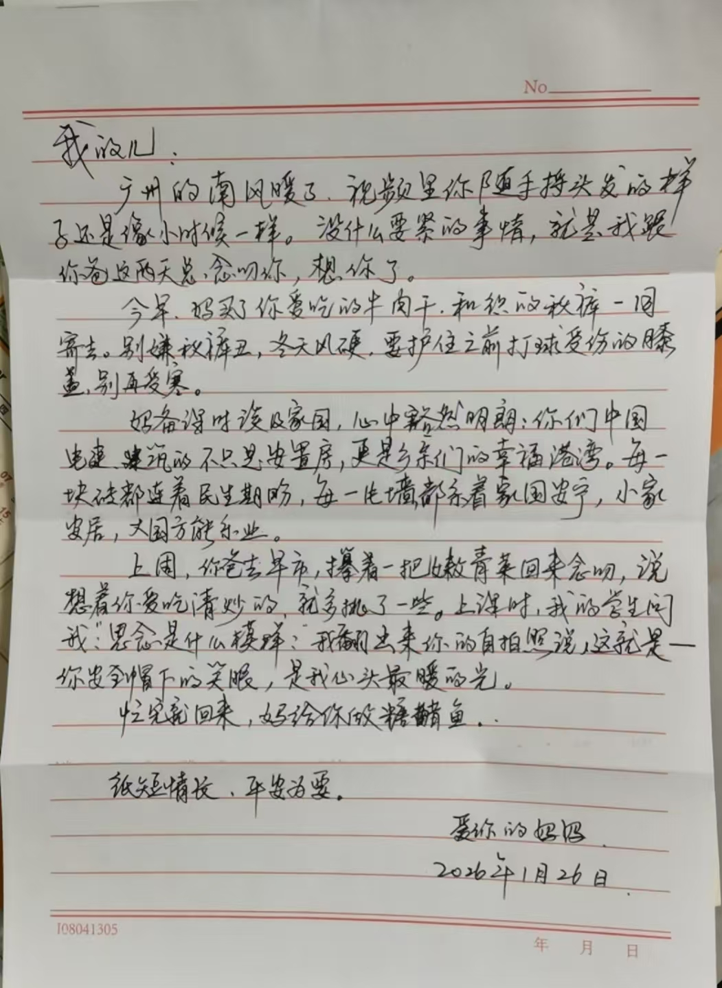 广州的南风携着珠江畔湿润的暖意,漫过漫过长平待兴的沃壤,穿进我宿舍半开的窗。指尖捏着刚拆封的信纸,还沾着快递袋里牛肉干的咸香——那是妈妈今早刚寄来的包裹,字里行间漫开的温度,和信纸上的褶皱一样柔软。 信笺上的字带着钢笔洇开的浅墨痕:“广州的南风暖了,视频里你随手捋头发的样子,还是像小时候一样。没什么要紧事,就是我跟你爸这两天总念叨,想你了。”我笑着摩挲后颈,想起童年疯跑回家时,也是这样抬手捋去额角的汗,妈妈总笑着轻拍我手背,嗔怪“慢些跑,别摔着”。原来有些小动作,在母亲的视线里,永远是孩子的模样。 “今早买了你爱吃的牛肉干,和织的秋裤一同寄去。别嫌秋裤丑,冬天的风硬,要护住你从前打球磕伤的膝盖。”拆包裹时,我把叠得方方正正的秋裤铺在床尾,针脚歪扭却密实,是妈妈独有的风格——她总说“织得慢,但针脚密,挡风”。就像她腌的萝卜干、熬的糖醋鱼,不讲究精致摆盘,却裹着独属于家的烟火气。上周视频里随口提了一句想吃家里的青菜,爸爸便攥着一把带着晨露的嫩青菜从早市回来对妈妈念叨:“我儿子爱吃清炒的”。这些细碎的牵挂,像南风里飘飞的棉絮,轻轻落进心口,软得让人鼻头发酸。 妈妈在信里写道:“备课时讲到家国情怀,心中豁然明朗:你们中国电建造的不只是安置房,更是乡亲们的幸福港湾。每一块砖都连着民生的期盼,每一片墙都系着家国的安宁,小家安居,大国方能乐业。”那些为了让乡亲们早日住进暖屋的奔波,在我心底烙下的印记,恰如一枚温热的勋章。我们为乡亲们砌筑的每一方墙体,都是在为他们推开一扇向阳的窗;铺设的每一块砖瓦,都是在为孩童搭建一张安稳的书桌。就像妈妈说的,千千万万个小家安稳了,大国的春天才会真正暖起来。 妈妈的学生问“思念是什么模样”,她便翻出我戴安全帽的自拍照,笑着说:“这就是——你安全帽下的笑眼,是我心头最暖的光。”我对着宿舍的镜子扯了扯嘴角,安全帽压得额角发紧,但笑起来的弧度,该和小时候一模一样吧。工地的灯亮到深夜时,我总想起家里客厅的暖黄灯光:妈妈在灯下批改作业,爸爸在旁翻着报纸,偶尔抬头轻声说一句“儿子今天又给你发照片了没”。原来我的每一步前行,都始终在他们的目光里。 信的末尾,她写道:“忙完就回来,妈给你做糖醋鱼。纸短情长,平安为要。”我把信纸折成小巧的方块,塞进工装口袋,和安全帽放在一处。南风还在吹,带着珠江的潮气,也裹着家的烟火气。想到这些,明天我去工地的底气更足了些,让乡亲们住进的的新居更暖些——就像妈妈织的秋裤,针脚里藏着的,全是妥帖的牵挂。 原来家从来不是远方的房子,是妈妈熬得酸甜入味的糖醋鱼,是爸爸攥在手里带着晨露的嫩青菜,是信笺上那句轻描淡写的“想你了”。而我在长平砌的每一块砖,都是在为更多人筑造这样的家。南风拂过窗台,我仿佛已经闻到了糖醋鱼的香气,那是家的方向,也是我脚下稳稳的远方。 | ||||||||||