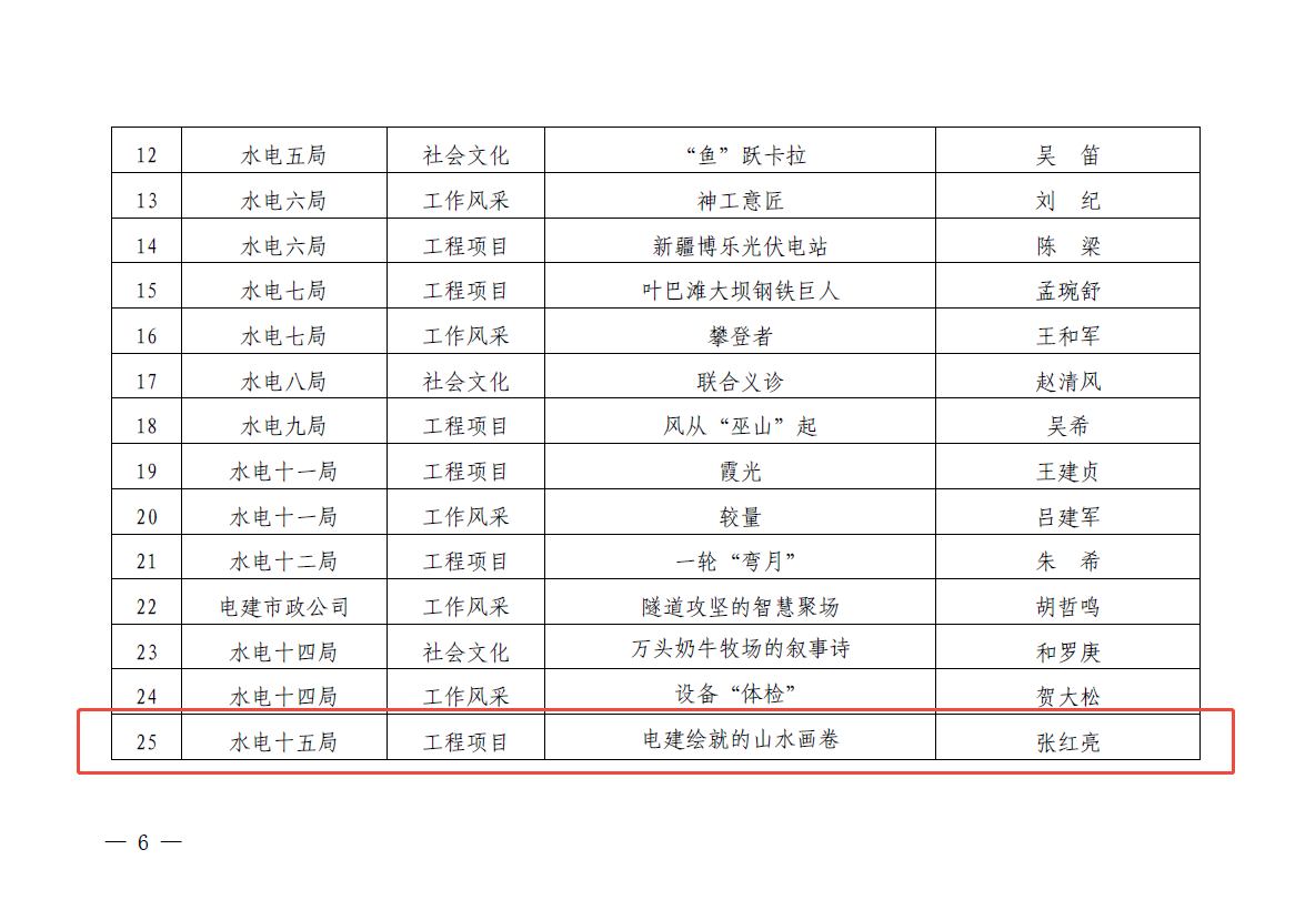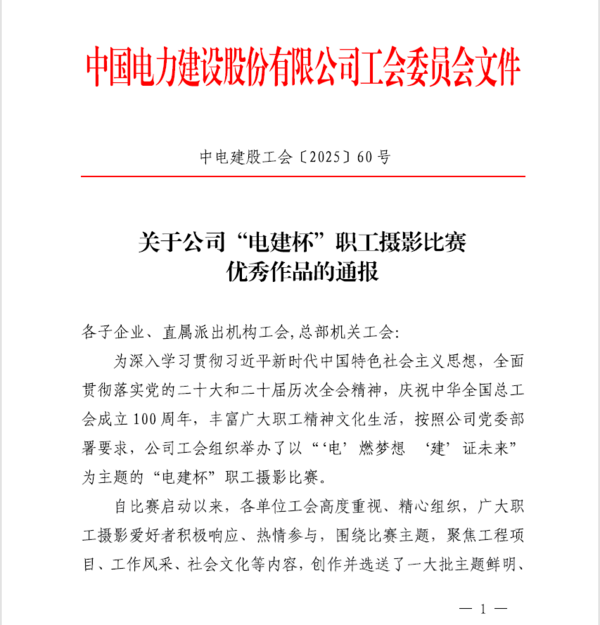 12月26日,中国电力建设集团有限公司“电建杯”职工摄影比赛获奖名单公布,第四工程公司职工张红亮作品《电建绘就的山水画卷》荣获三等奖。 该作品聚焦工程建设,内容丰富、构思巧妙,以光影捕捉山河之美,以镜头记录电建担当。绰尔河畔,文得根水利枢纽巍然矗立,与青山相映、绿水相融,浑然一体间,绘就人与自然和谐共生的绝美画卷;充分体现了电建人秉持科创赋能初心,坚守生态和谐理念,以高质量水利工程筑牢民生根基,以可持续发展路径守护山河本色。 下一步,四公司工会将持续引导广大职工用镜头记录时代发展,用光影讴歌劳动创造,大力唱响奋斗主旋律,为推动公司高质量发展贡献更多力量。