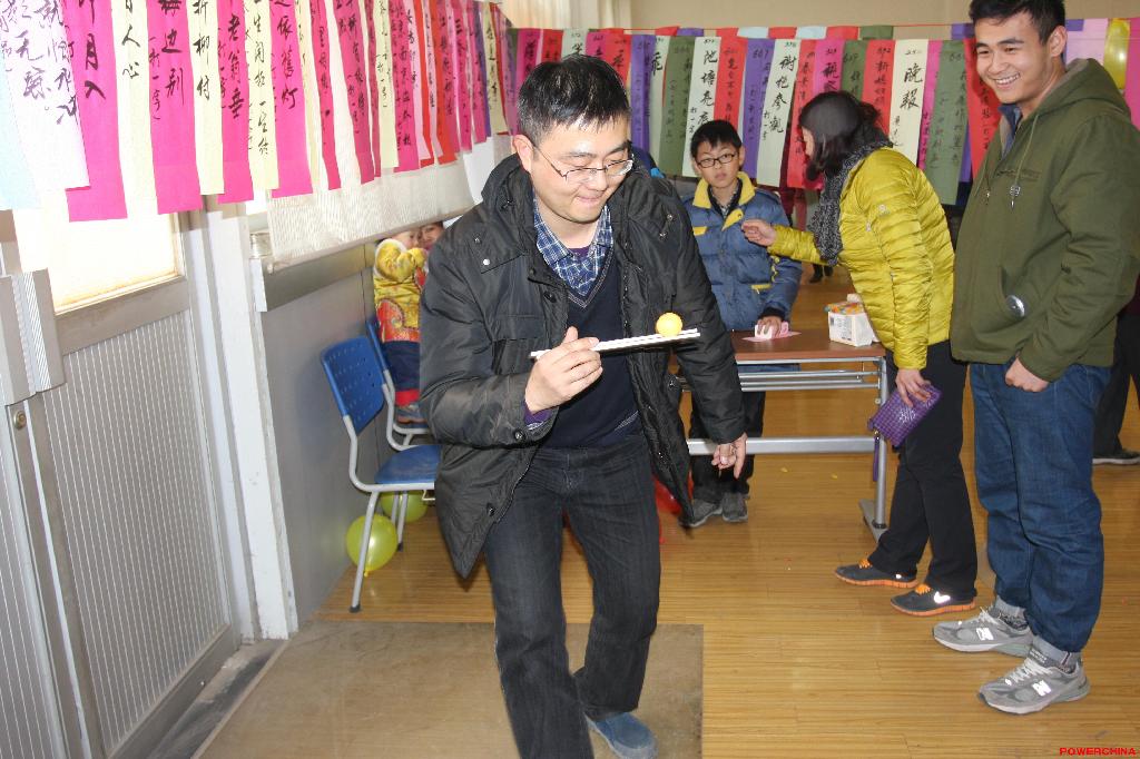 夹乒乓球 红红火火过马年,热热闹闹猜灯谜。2月14日下午,我局机关党委、机关工会在水电大厦多功能厅精心筹划举办了庆元宵灯谜游艺会。在家局领导班子成员、机关干部职工及科技路小区家属300余人欢聚一堂,共同度过了一个欢乐、祥和、喜庆的元宵佳节。 活动现场,欢声笑语、热闹非凡,“套圈”、“投篮”、“吹乒乓球”等新颖别致而又充满趣味与挑战的游戏前都排起了长龙,老的少的,男的女的,玩的人认真专注,等的人兴致勃勃。“猜灯谜”活动更是把活动推向了高潮,在各种动物谜、成语谜、字谜、地名谜、人名谜条前,大家开动脑筋,踊跃答题。有的很快猜出谜底;有的站在谜条前驻足凝思,绞尽脑汁,一定要把谜底猜出来才肯离去;有的三三两两一起猜谜,用共同的智慧寻找答案,大家尽情享受猜谜语的乐趣。整个游艺活动现场洋溢着浓浓的节日气氛,喜悦之情溢于言表。 游艺会后,大家仍意犹未尽,纷纷表示:这次的活动非常成功,既愉悦了身心,增添了节日的气氛,又弘扬了民族文化,让他们度过了一个快乐的元宵佳节,感受到了水电大家庭的温暖与和谐。 | ||||||||||