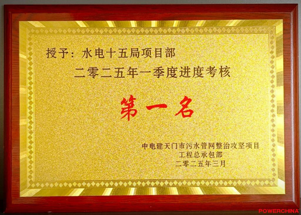 4月2日,天门市管网整治攻坚项目部在天门市电建生态总承包部2025年第一季度综合考核中,荣获“季度进度考核第一名”称号,并获颁奖牌。此项荣誉的获得,不仅彰显了项目部在建设和管理方面的优秀水平,也为公司进一步开拓湖北市场奠定坚实基础。