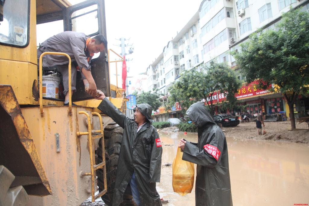 沿街群众和商户看在眼里,纷纷拿出家里的好吃的和好喝的,来款待抢险队员们,并热情邀请大家回自家屋里就餐。