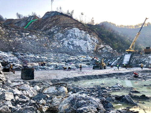 腊月28是各家置办年货,满载而归的时候,但在西北部丹江一级支流清油河上游一处规模宏伟的工地上,却是另一番如火如荼的景象。