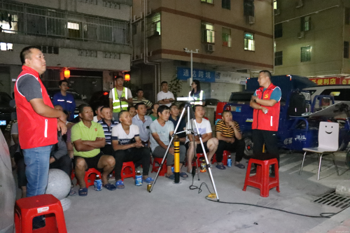 龙岗项目坚持每晚利用下班后空闲时间,由党员干部轮流进行“安全送教进工地”活动,在工人宿舍或食堂通过投影以PPT、安全警示教育片等方式让每一位工人都从根本上了解和重视安全文明施工。
