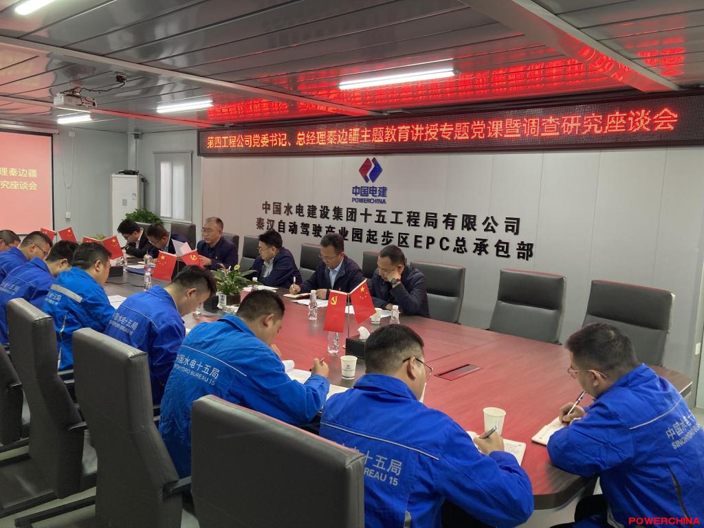 为认真贯彻落实习近平新时代中国特色社会主义思想和党的二十大精神,结合主题教育工作相关要求,10月19日,四公司党委书记、总经理赴项目一线开展主题教育专题党课暨调研座谈会,四公司党委工作部、总经理办公室相关人员,秦汉及沣东区域项目领导班子、部门负责人、党员等共计30余人参会。