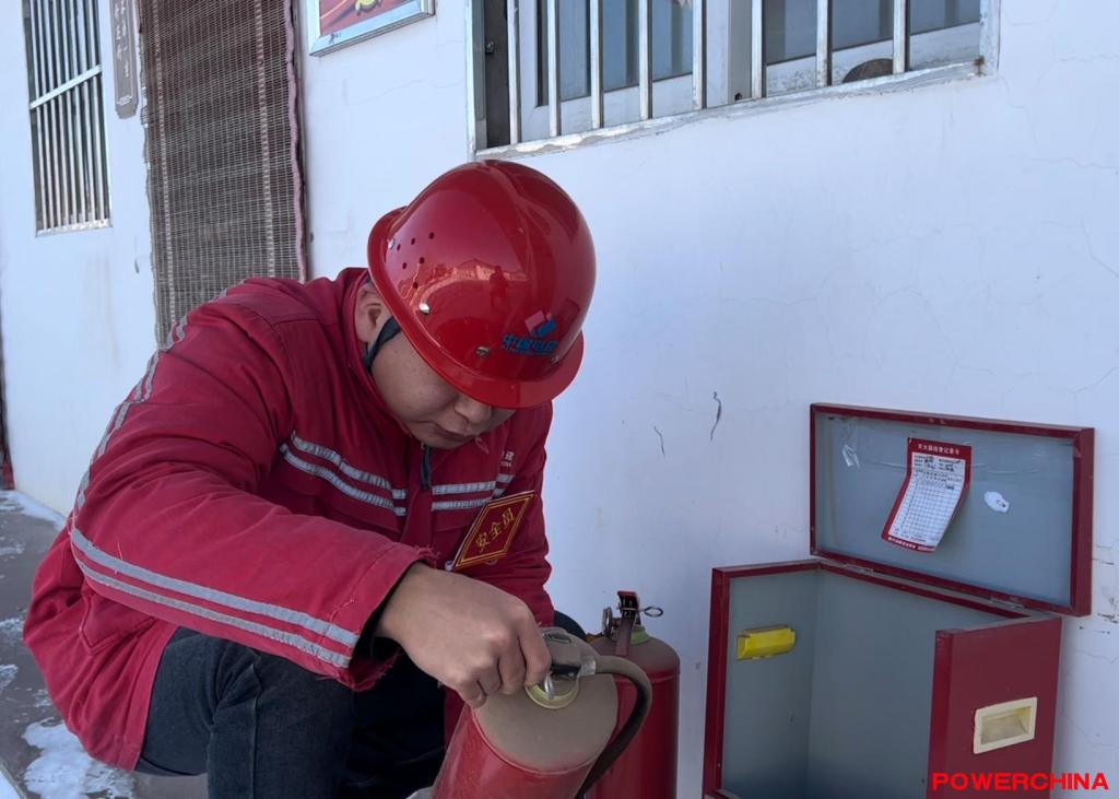 “春节我在岗,消防不打烊!”寒风虽烈,却吹不灭项目值守安全员的责任之火。他手持检查记录表,穿梭在生活营地与各个消防重点区域之间,逐一拿起灭火器,仔细检查其压力表指针是否在绿色安全区域,确认灭火器未过期且外观无损伤,为构建和谐、安全的生活环境贡献着自己的力量。